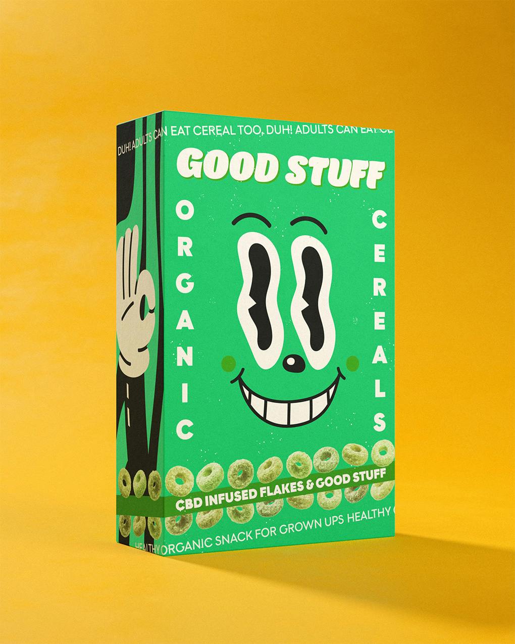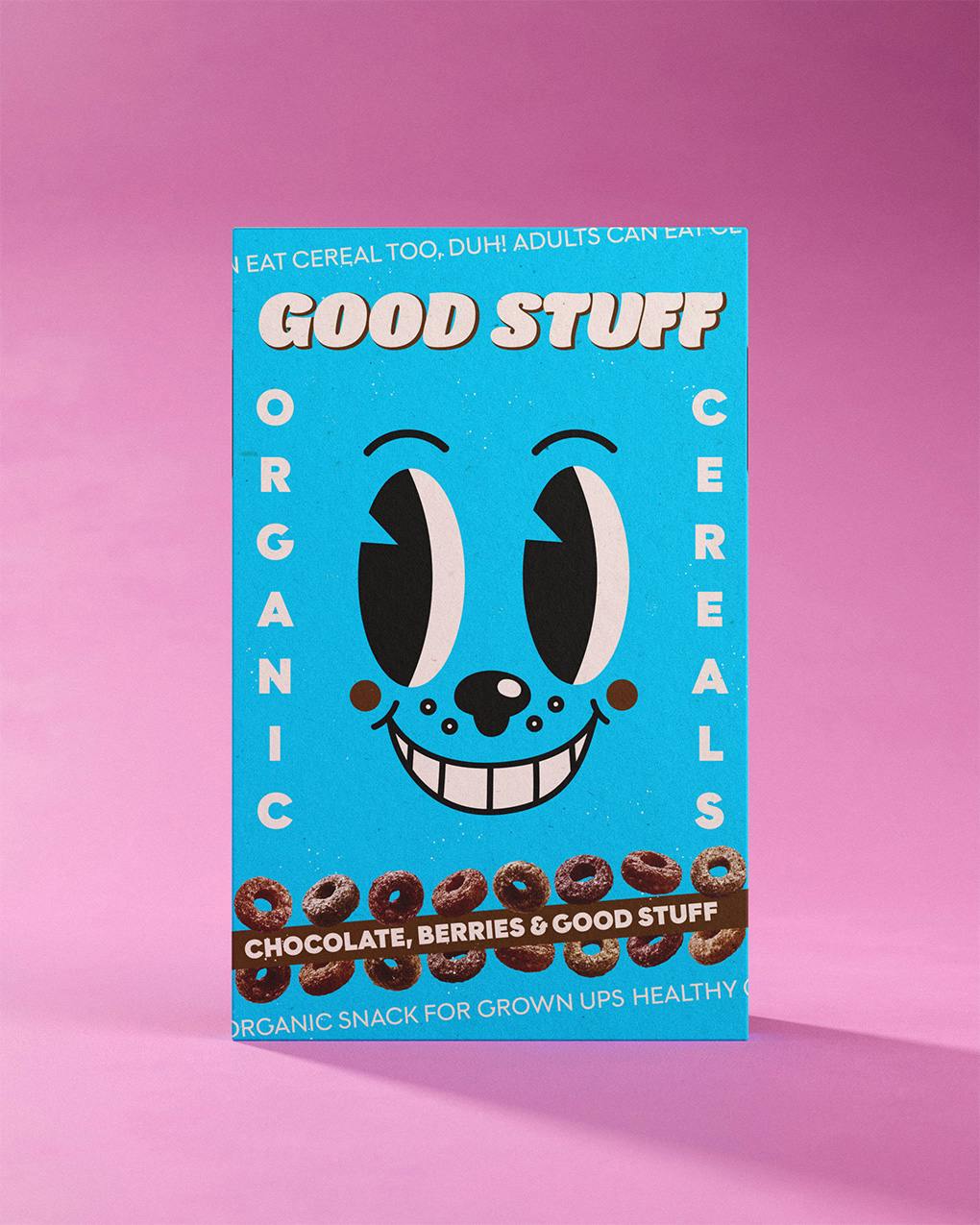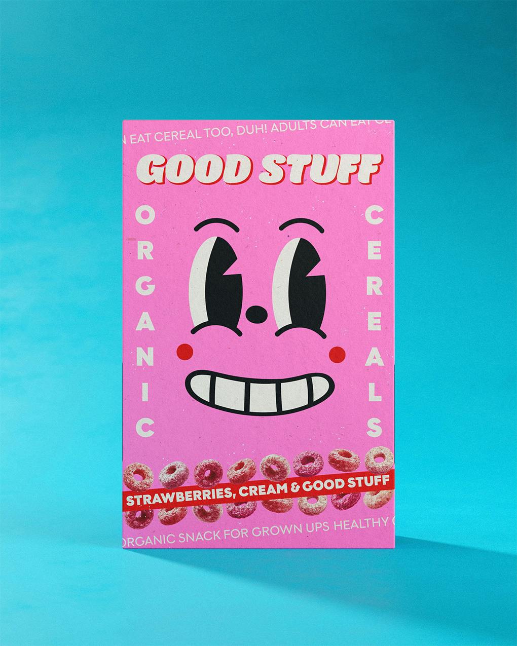 Bei GOOD STUFF Cereals war eine Wohlfühl-Nostalgie Kern des Designs: Erwachsenen Menschen soll am Frühstückstisch die gesunde, nachhaltige Version ihrer Kindheitserinnerungen serviert werden – das ist seriously GOOD STUFF.