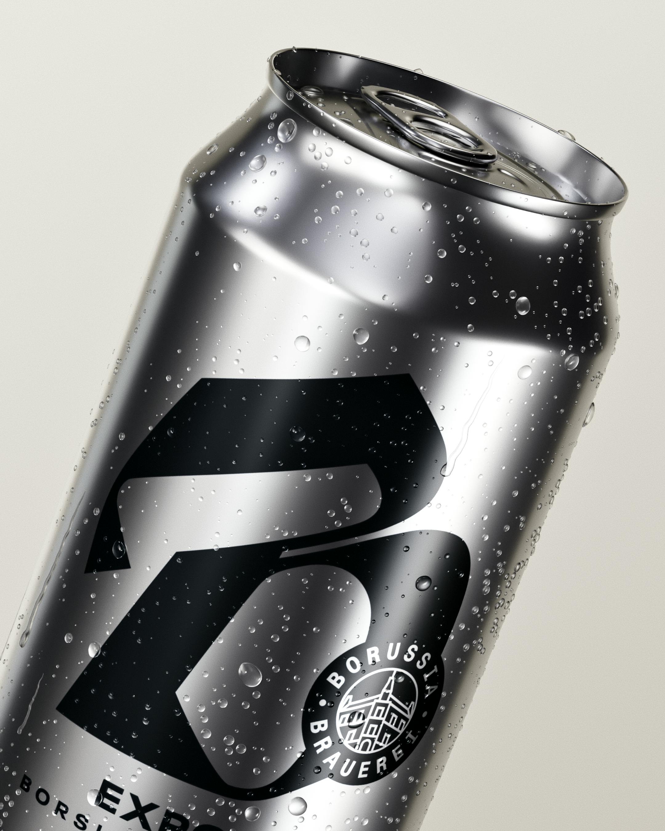 Clear shapes, clear language: Borussia Brauerei remains true to its line for the relaunch of the historic beer. The label design dispenses with anything unnecessary: a silver can is dominated by a thick, stylized "B" next to the type designation. This creates space for the historical context of the brewery without imposing itself visually.