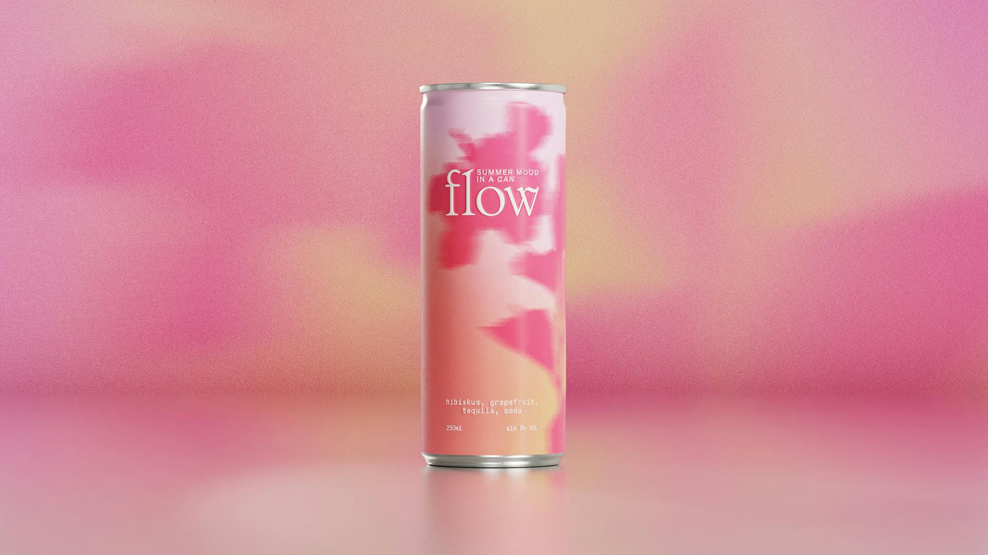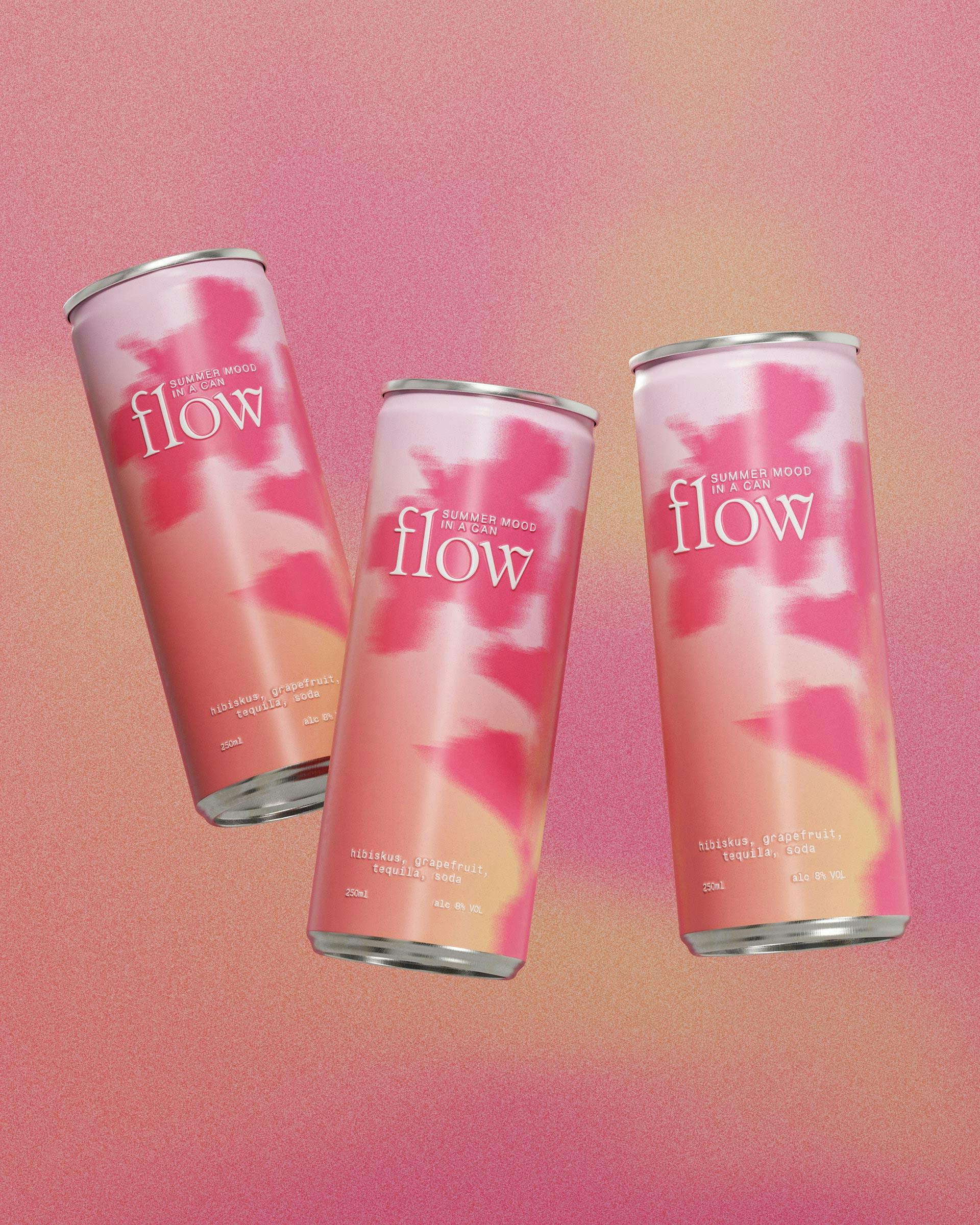 Flow – like the feeling of summer in a can. The cocktail mix is inspired by warm, never-ending summer nights and a stylish way to break out of the everyday – and the design language of the drink aisle – with a cocktail-to-go.